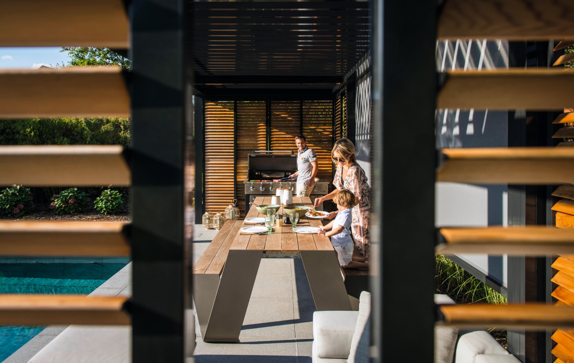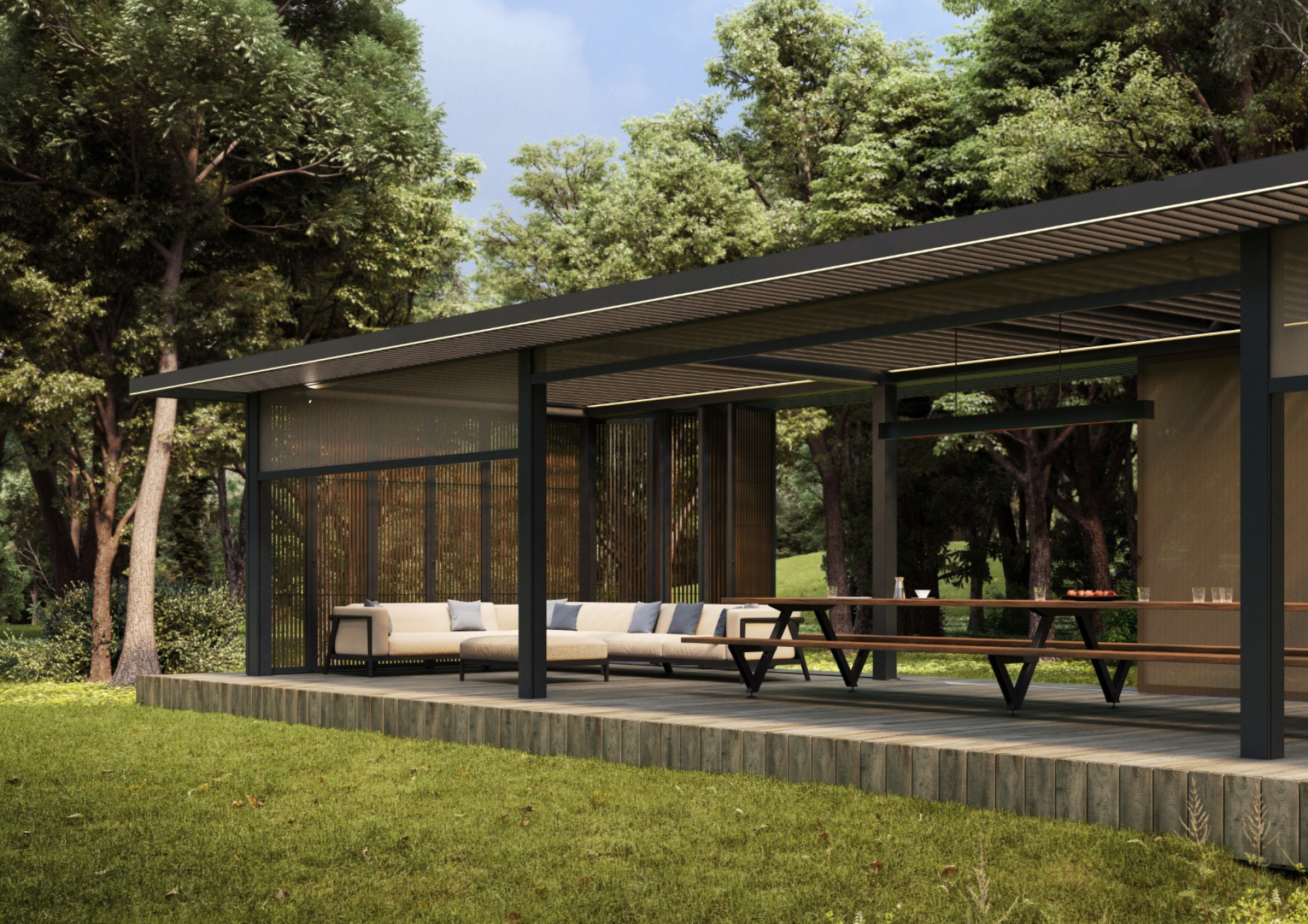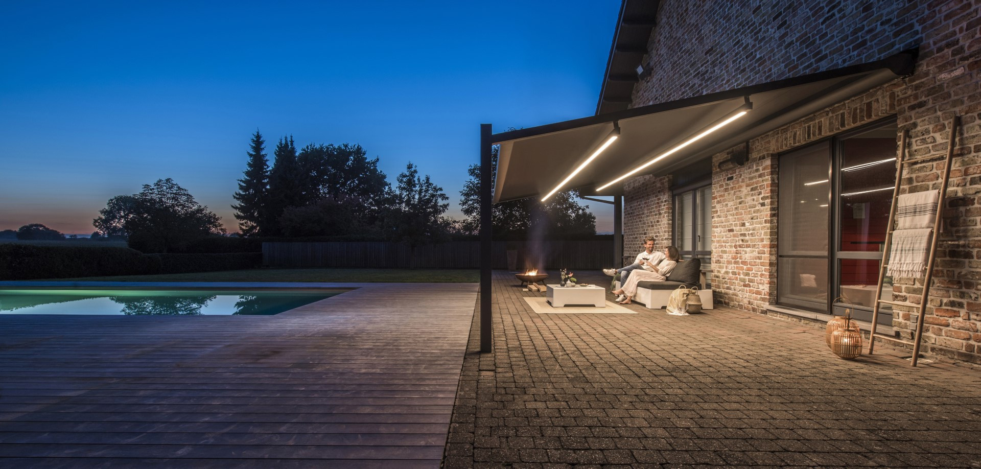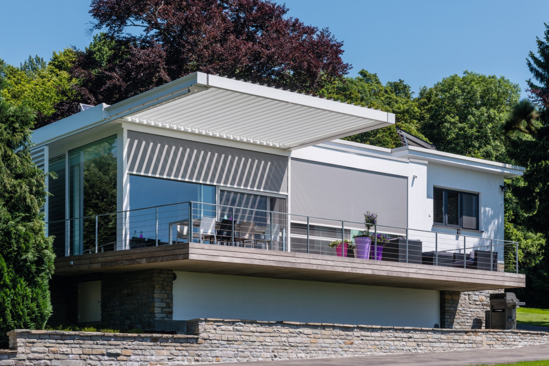 La Camargue Skye de Renson, offre une gestion optimale de la lumière et de la ventilation, grâce à sa toiture bioclimatique et rétractable. L’innovation de la technologie S-Drive de l’entrainement des lames assure un produit d’excellence pour un confort haut de gamme et durable.