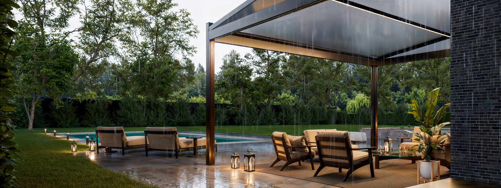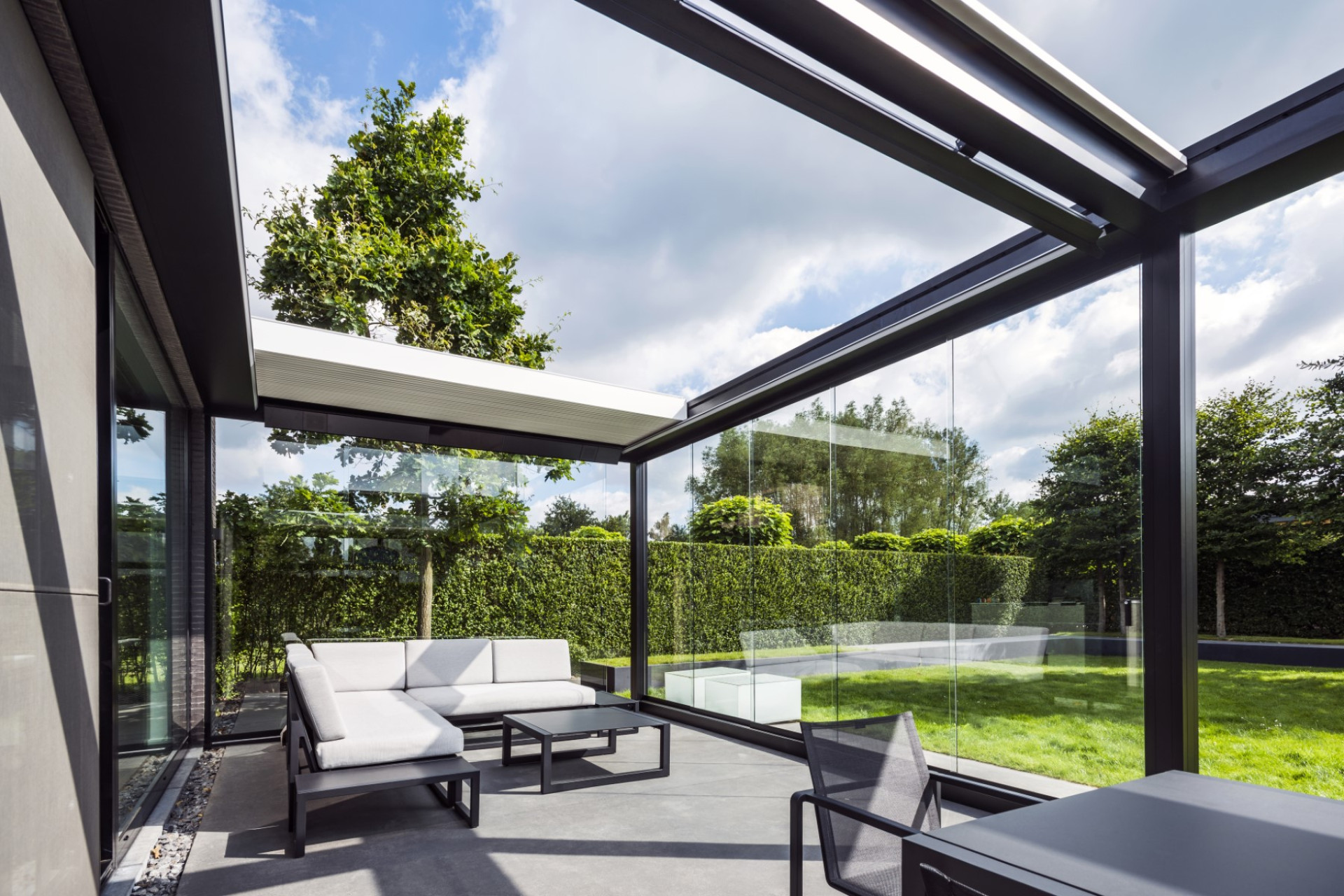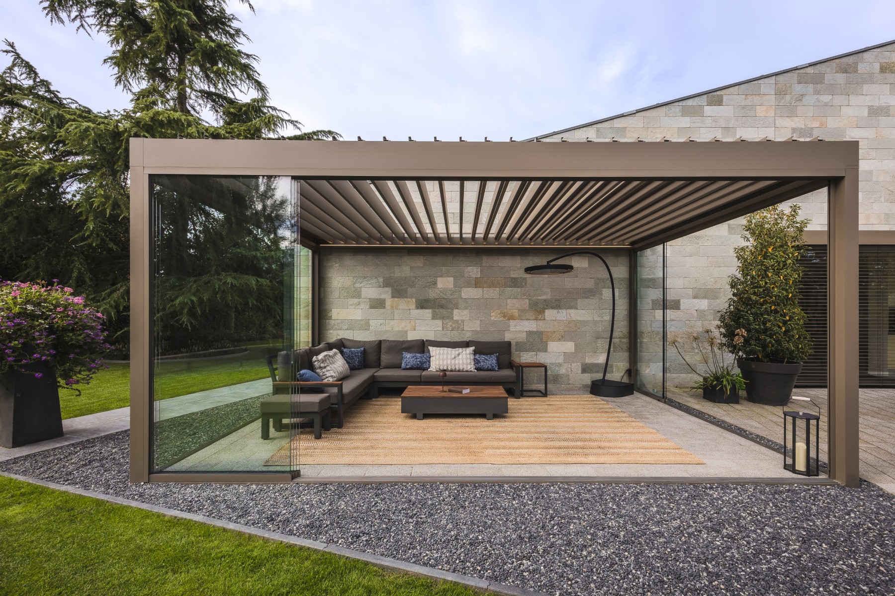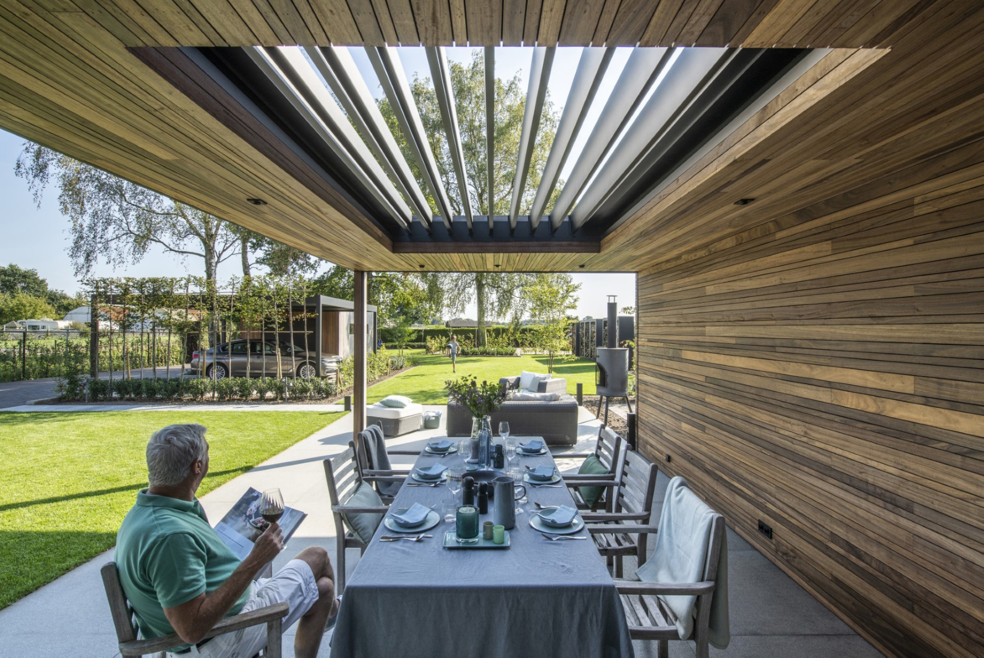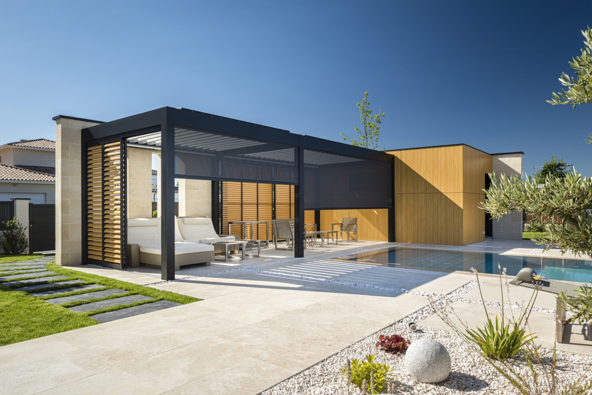 La Camargue Skye de Renson, offre une gestion optimale de la lumière et de la ventilation, grâce à sa toiture bioclimatique et rétractable. L’innovation de la technologie S-Drive de l’entrainement des lames assure un produit d’excellence pour un confort haut de gamme et durable.
