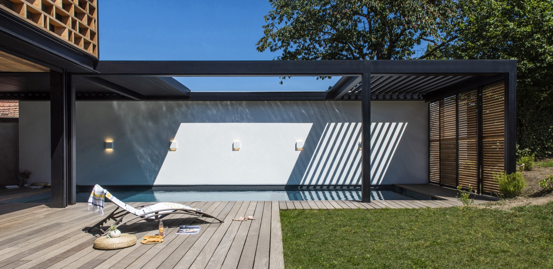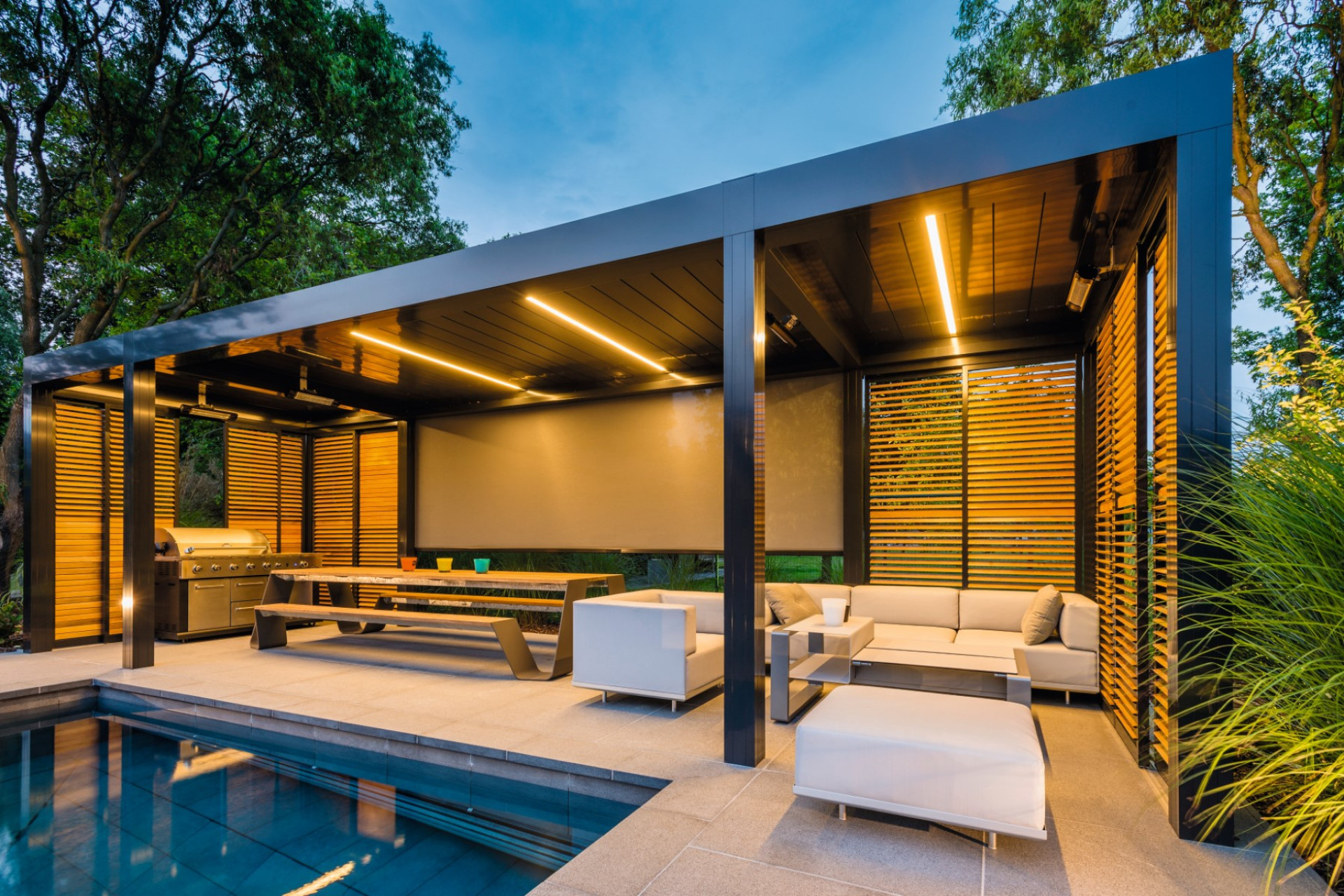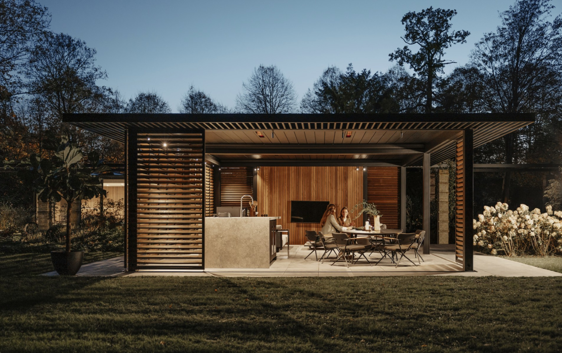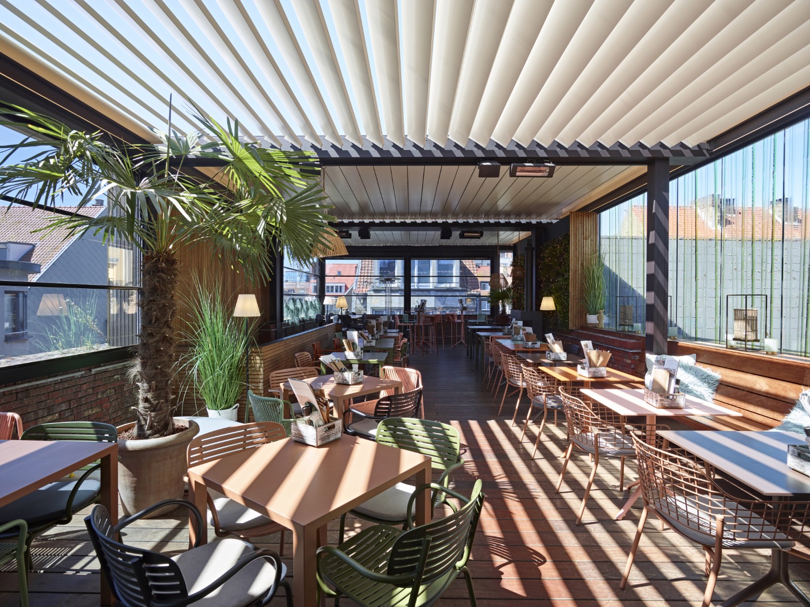 La Camargue Skye de Renson, offre une gestion optimale de la lumière et de la ventilation, grâce à sa toiture bioclimatique et rétractable. L’innovation de la technologie S-Drive de l’entrainement des lames assure un produit d’excellence pour un confort haut de gamme et durable.