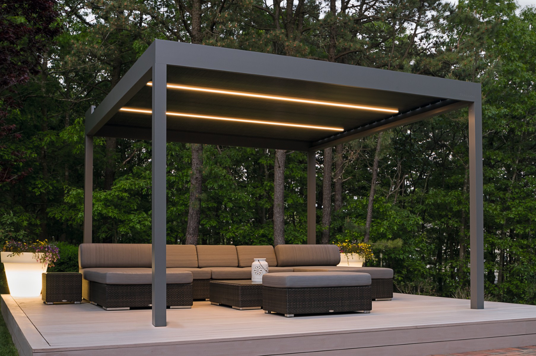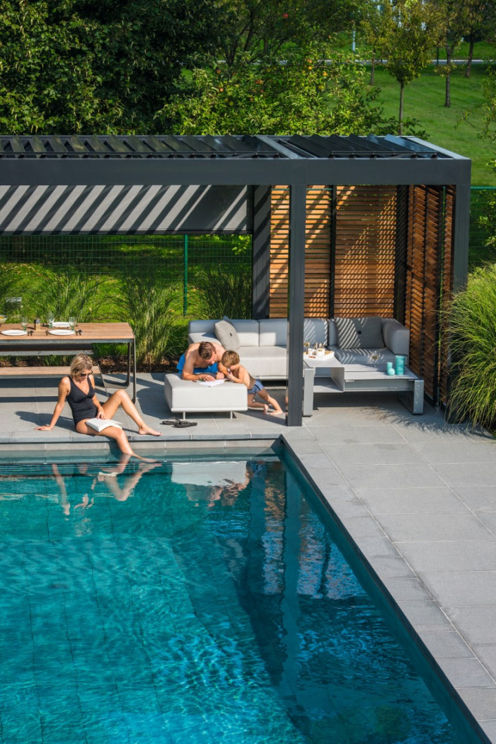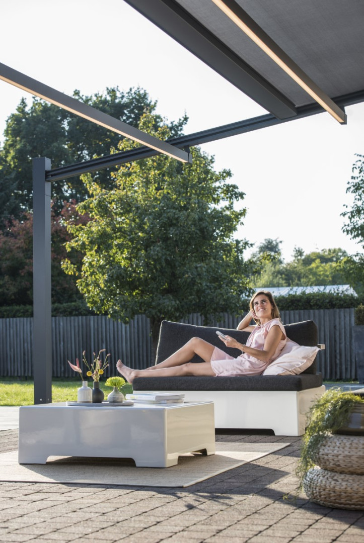 Amani vous offre le choix d’une conception exclusive. Vous choisissez l’emplacement des colonnes, ajoutez des débords, créez des auvents élégants. Vous jouez avec les formes et les lignes pour une réalisation architecturale unique.