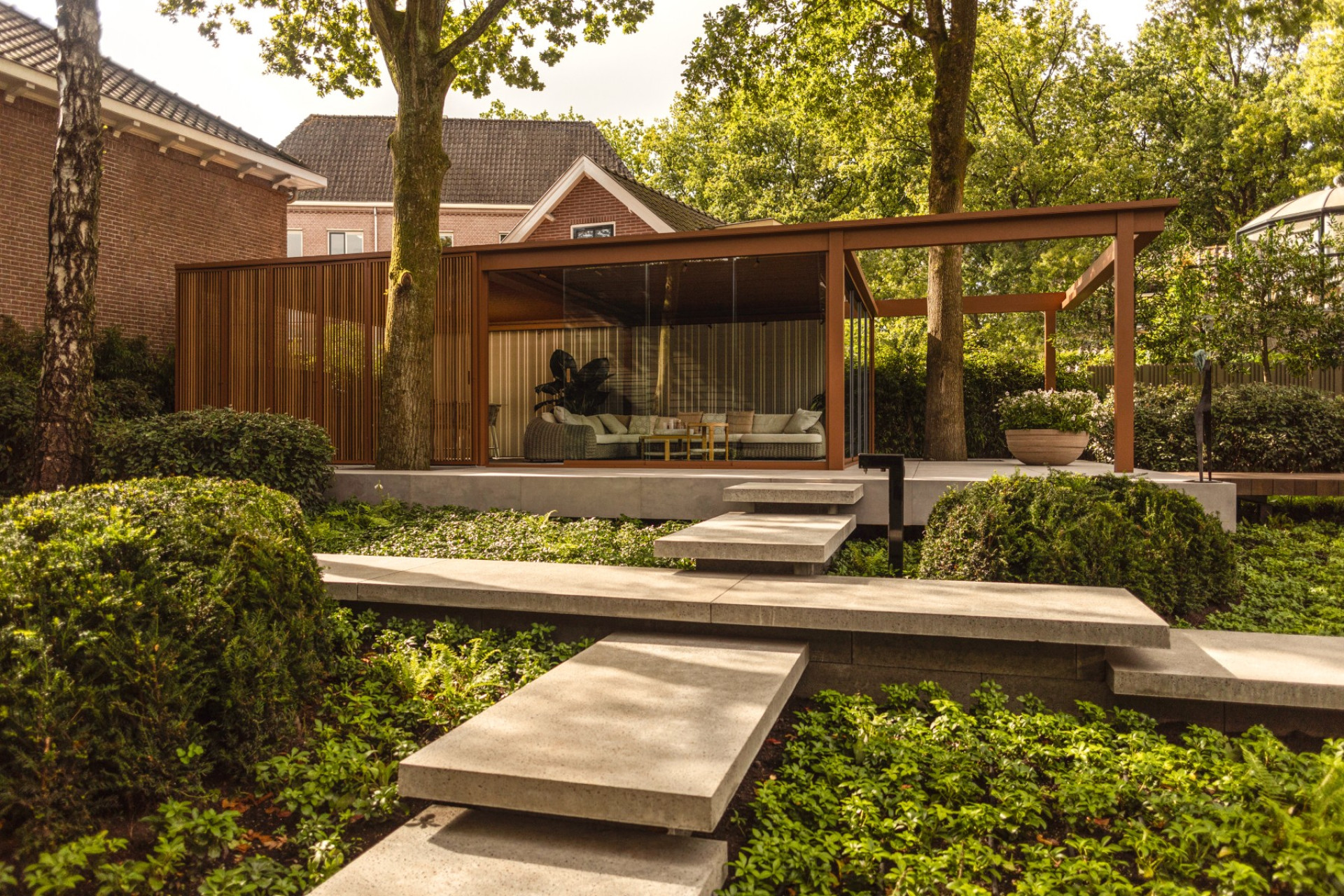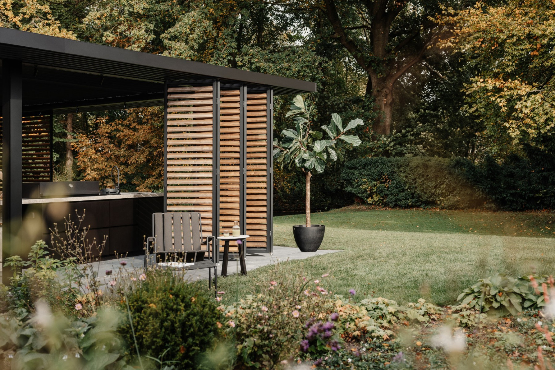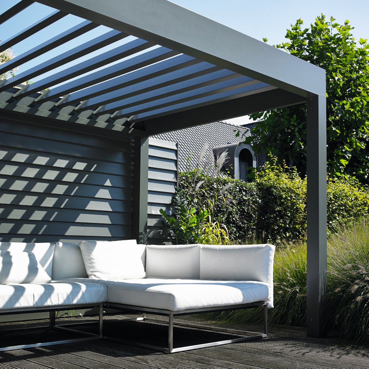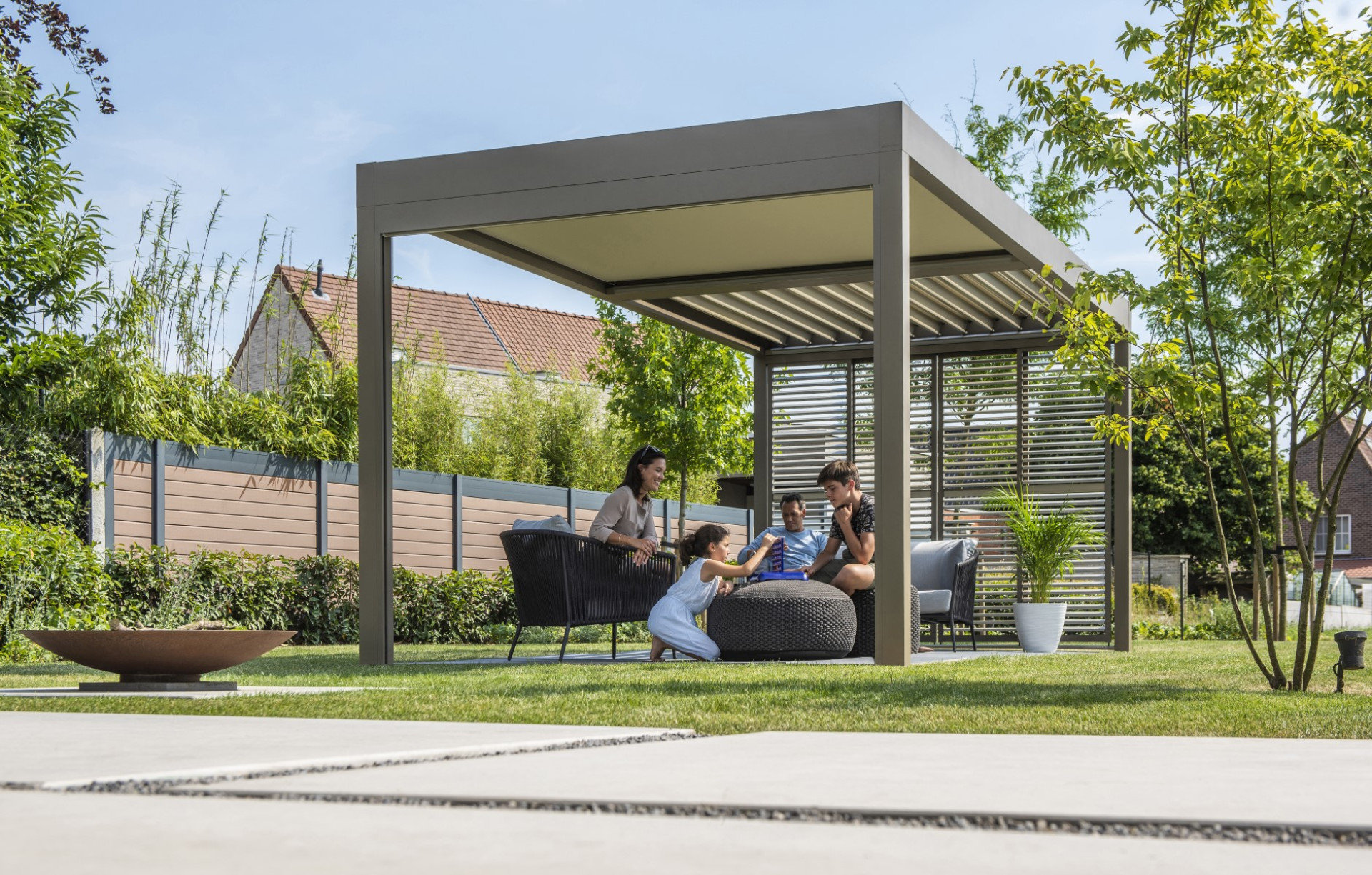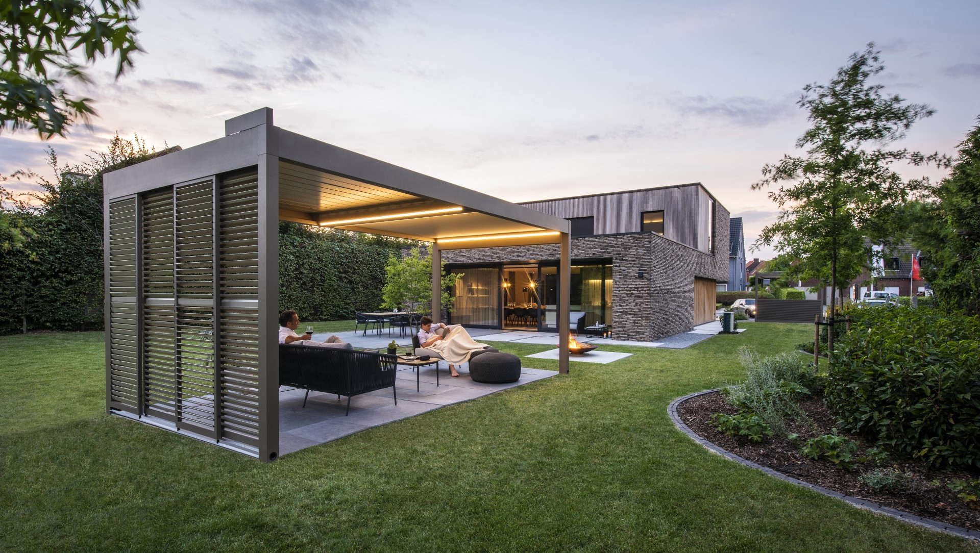 La pergola Algarve de Renson à lames orientables, permet de créer le confort idéal sur une terrasse. Elle offre une gestion optimale de la lumière et de la ventilation. Elle s’harmonise parfaitement à vos extérieurs et les sublime. Entièrement personnalisable avec des options telles que les stores, les panneaux latéraux, l’éclairages LED.