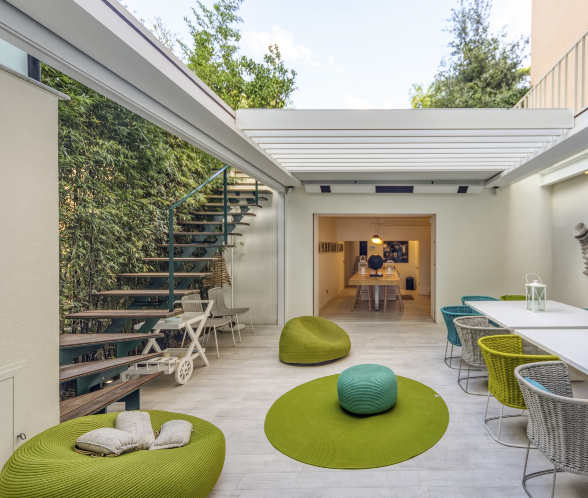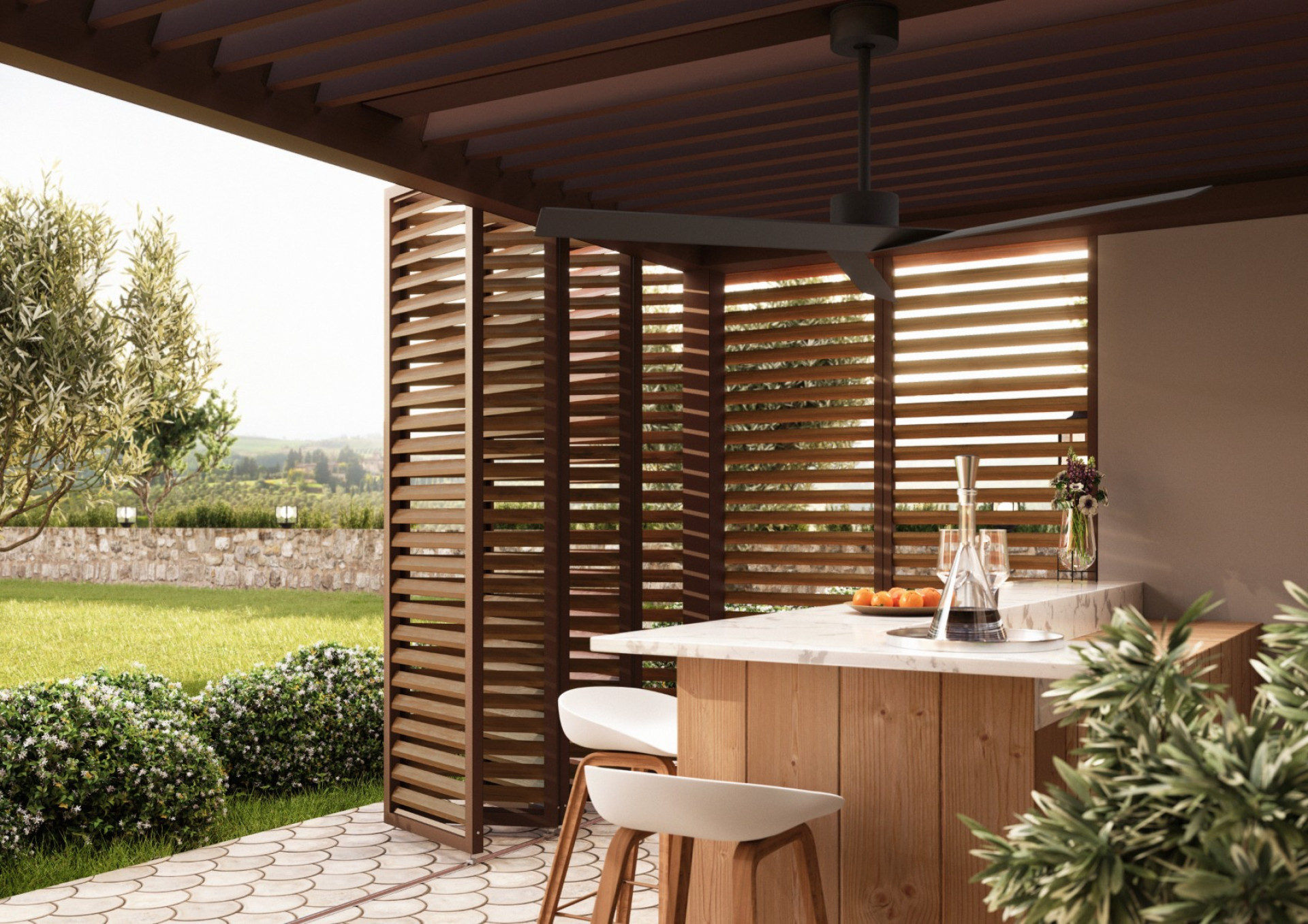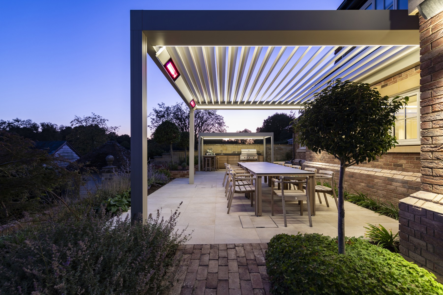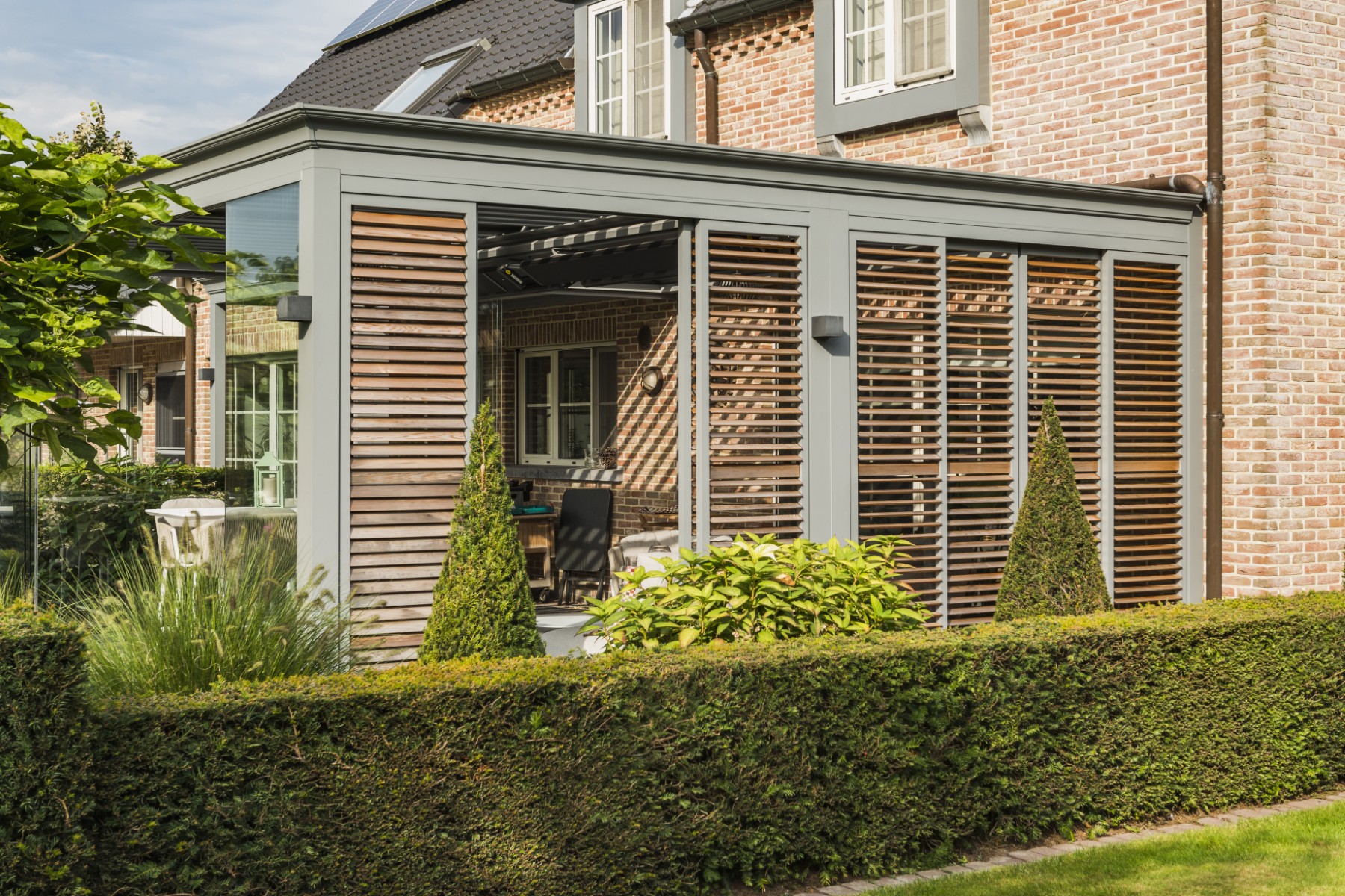 La toiture bioclimatique Aéro de Renson s’intègre dans une structure existante et permet de moduler la lumière, la ventilation et l’ombrage pour créer le climat idéal sur votre terrasse. Sa personnalisation poussée permet une intégration parfaite à son support pour un confort absolu en toute saison. Aéro dans sa version Skye est rétractable pour une ventilation optimale.